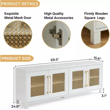 Mid Century Modern TV Stand for TVs up to 75", Boho White Wood Entertainment Center